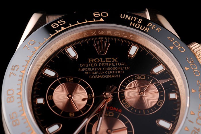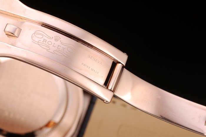 Crown: 18k or rose couronne cutwork avec Rolex logo et deux petits cutWork bouton-poussoir couronnes de part et d’autre de it