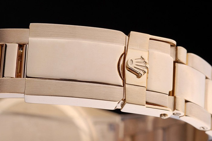 Bracelet en acier: Gold tons en acier inoxydable bracelet lien avec gravure Rolex boucle déployante affichage Rolex logo