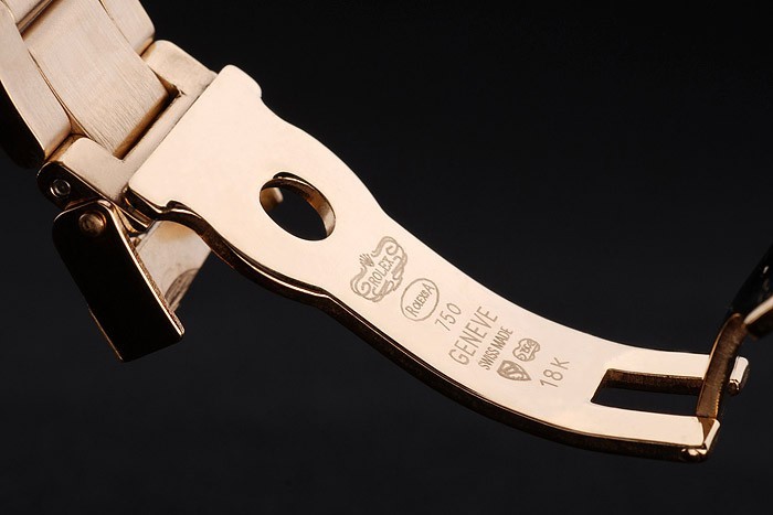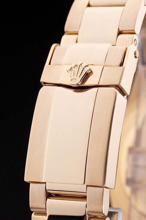 Bracelet en acier: Gold tons en acier inoxydable bracelet lien avec gravure Rolex boucle déployante affichage Rolex logo
