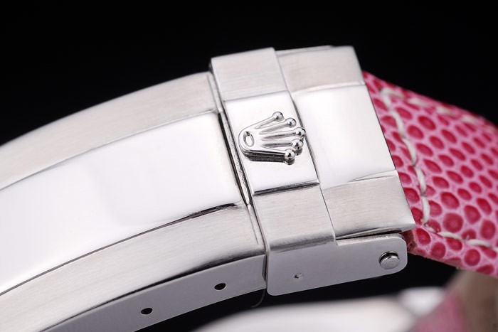 Bracelet en acier inoxydable: Rose bracelet en cuir de serpent avec Rolex et le logo Gravure et acier inoxydable boucle déployante en acier affichage Rolex logo