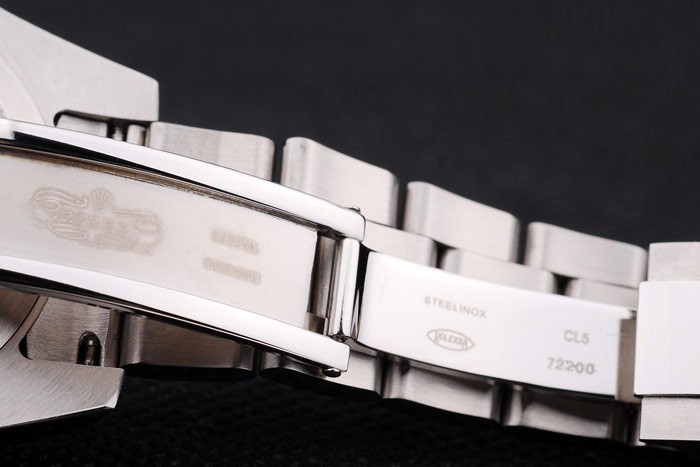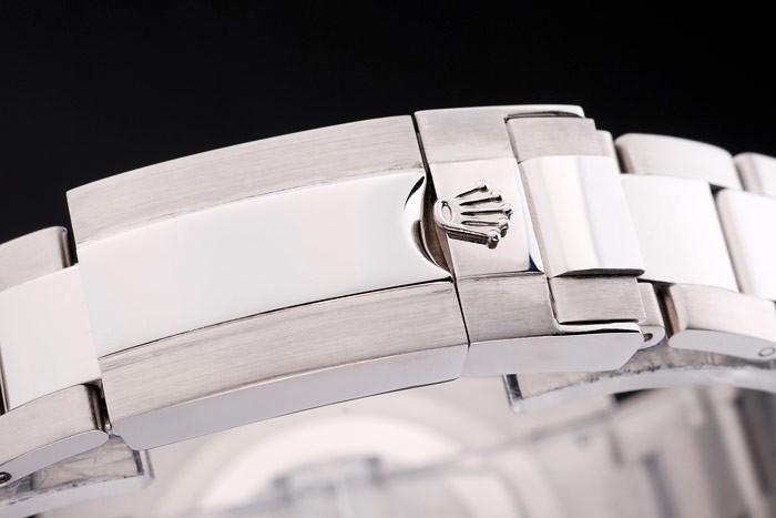 Bracelet: brossé et poli inoxydable cha ne à maillons en acier Boucle déployante et Rolex couronne engraving