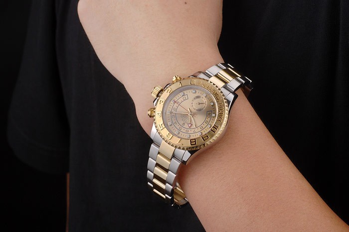 Bezel: or jaune plaqué unidirectionnel cutwork lunette avec 1 à 10 marques et Yacht master Gravure