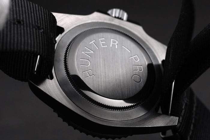 Retour: Ion-plaqué acier inoxydable push-en arrière avec Pro-Hunter inscription
