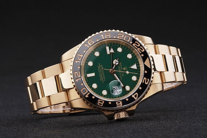 Le design raffiné de la Rolex GMT Master II-rl169 est complété par des détails minutieux tels que la couronne en acier inoxydable plaqué or jaune 18 carats avec le logo Rolex gravé. La lunette en acier inoxydable doré avec des chiffres lumineux et des marques de minutes fait de cette montre un parfait compagnon pour vos voyages et vos escapades.